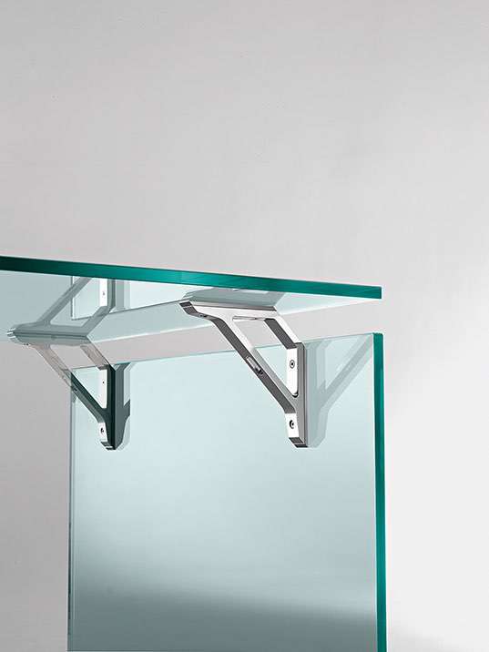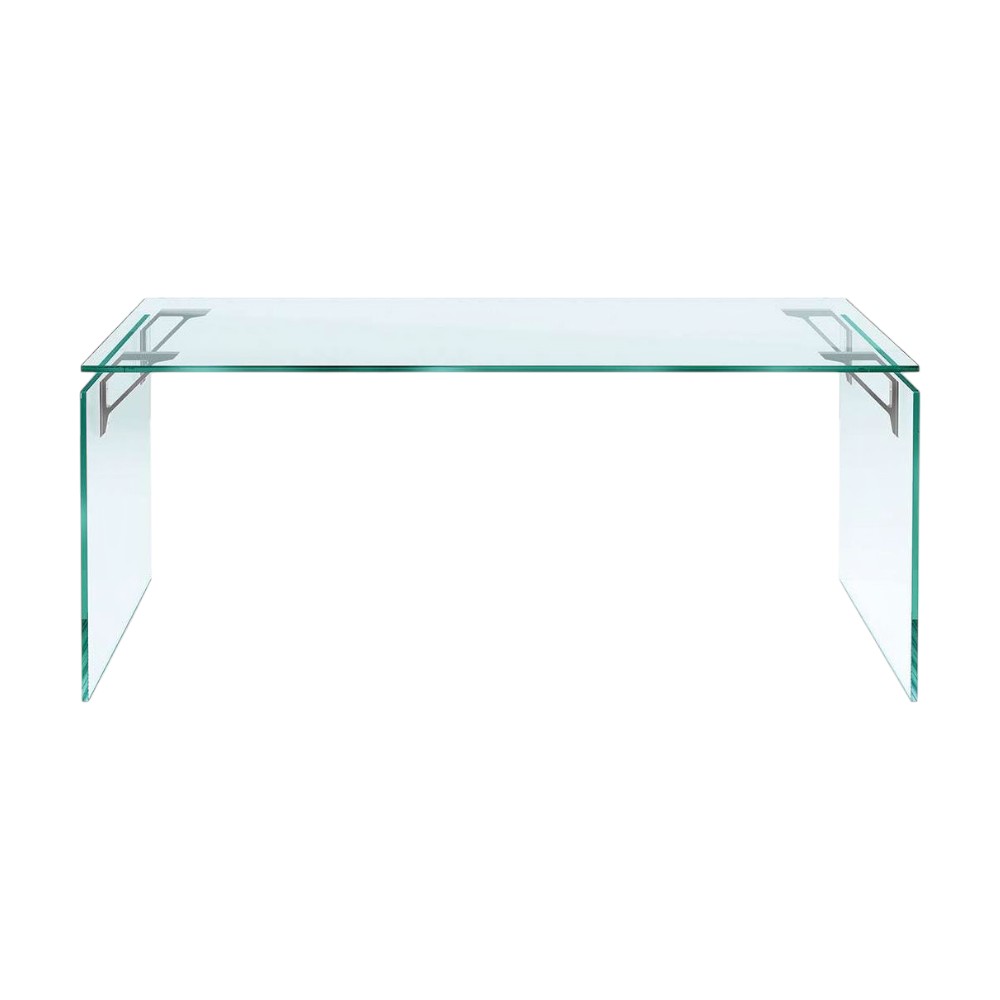The Bright glass desk, designed by Valerio Cometti for FIAM, features removable 15 mm tempered glass and strong aluminum and steel supports. Custom sizes are available. Cometti, a Mechanical Engineering graduate from the Polytechnic University of Milan, founded his design studio, Valerio Cometti+V12, after returning from Australia in 2005