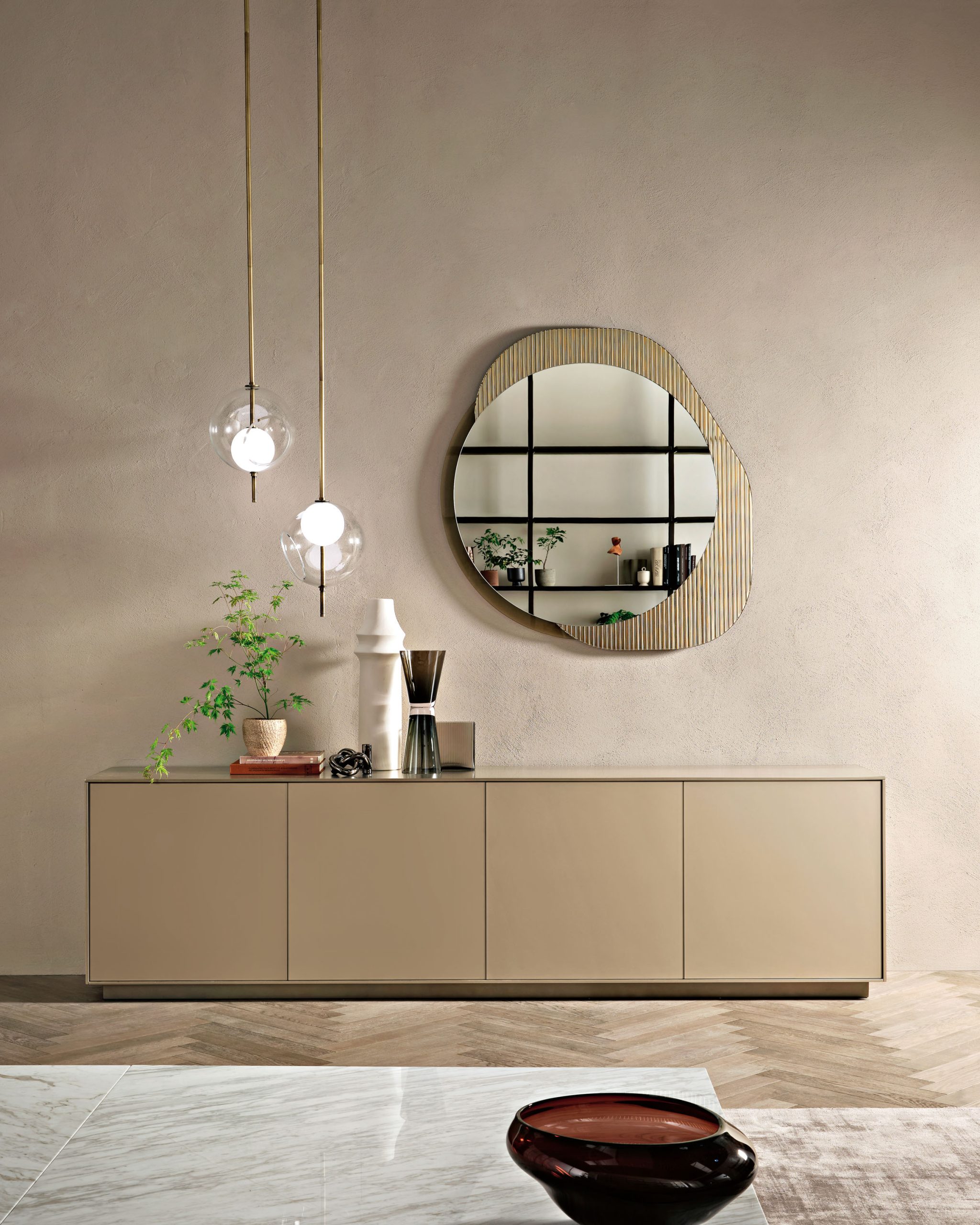 The Echo cupboard is a stunning piece that features a wooden lacquered structure available in a sleek matt white, sophisticated vulcan grey, or elegant Metallic Greige finish. Its doors are crafted from 6 mm thick tempered glass, offered in either fused or flat designs, with options including extralight back lacquered white, vulcan grey, or back silvered glass, as well as back silvered bronze glass. Inside, the cupboard boasts inner shelves made of 8 mm thick tempered smoke glass, enhancing its luxurious appeal. Designed by Marcel Wanders, the Echo cupboard reflects a commitment to experimentation and innovation, showcasing the unique collaboration with FIAM that allows for the creation of extraordinary pieces that play with shapes to evoke a captivating sense of illusion.