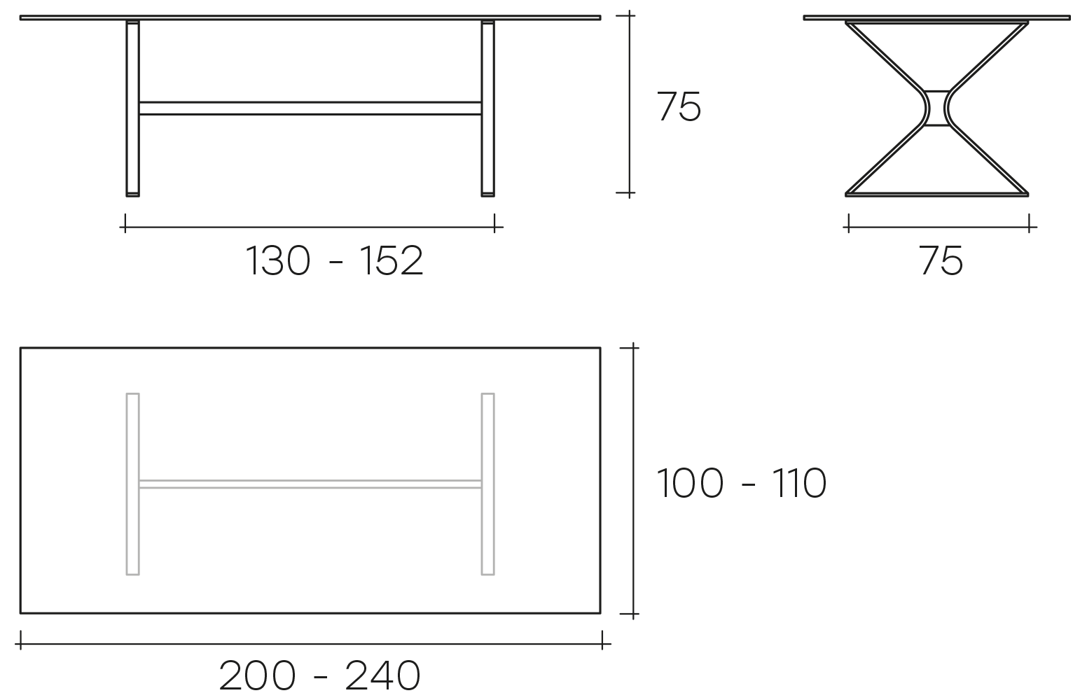 The Hype table features a painted metal base in a “Lava Grey” finish, with options for a fixed or extendable design. The tabletop is available in 12 mm or 15 mm fused glass, either back-painted in metallic or monochromatic colors, or in transparent fused tempered glass (fixed version only). Crafted using artisanal molten glass techniques, this table exemplifies Studio Klass’s approach of blending geometric references with meticulous formal research.