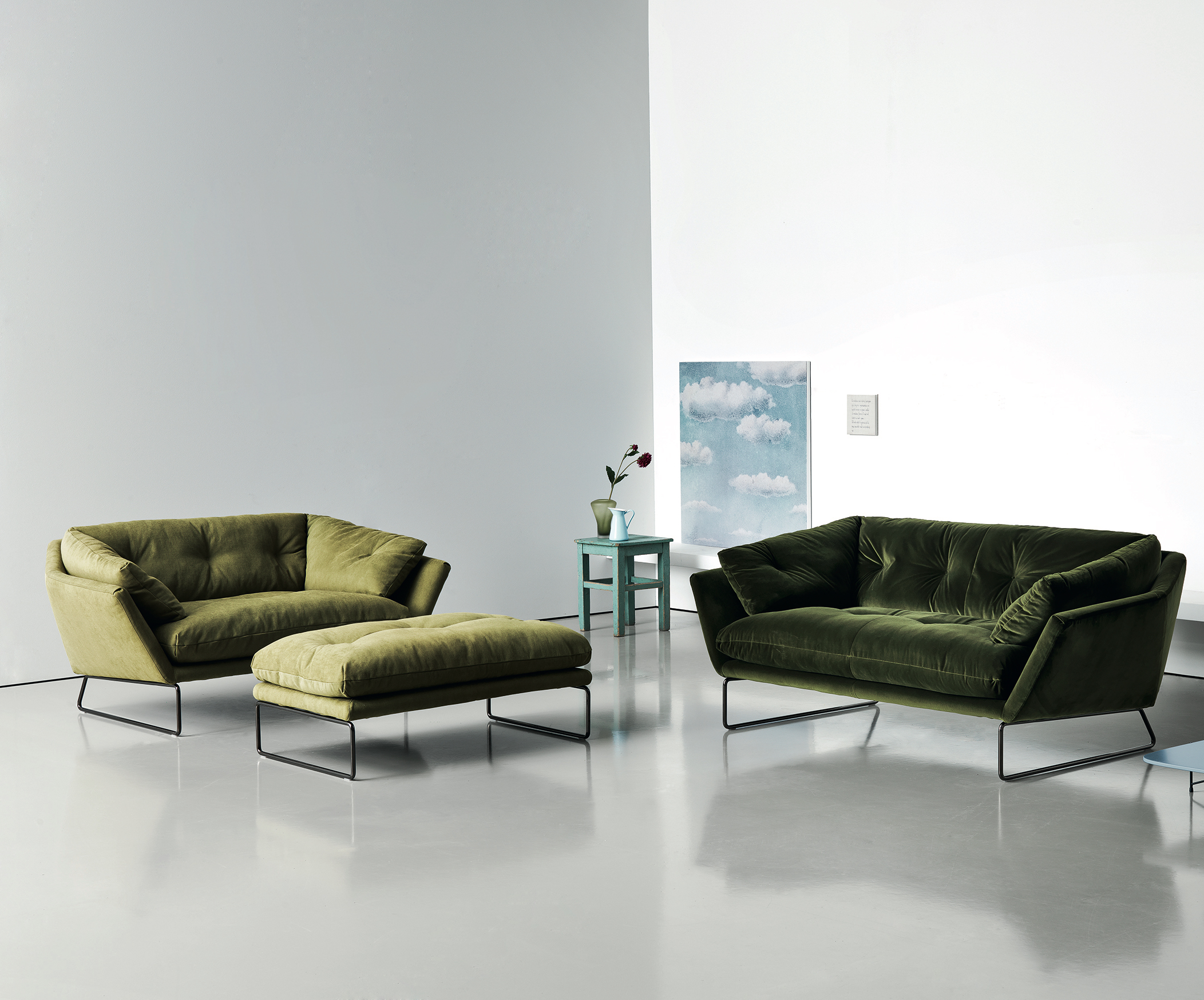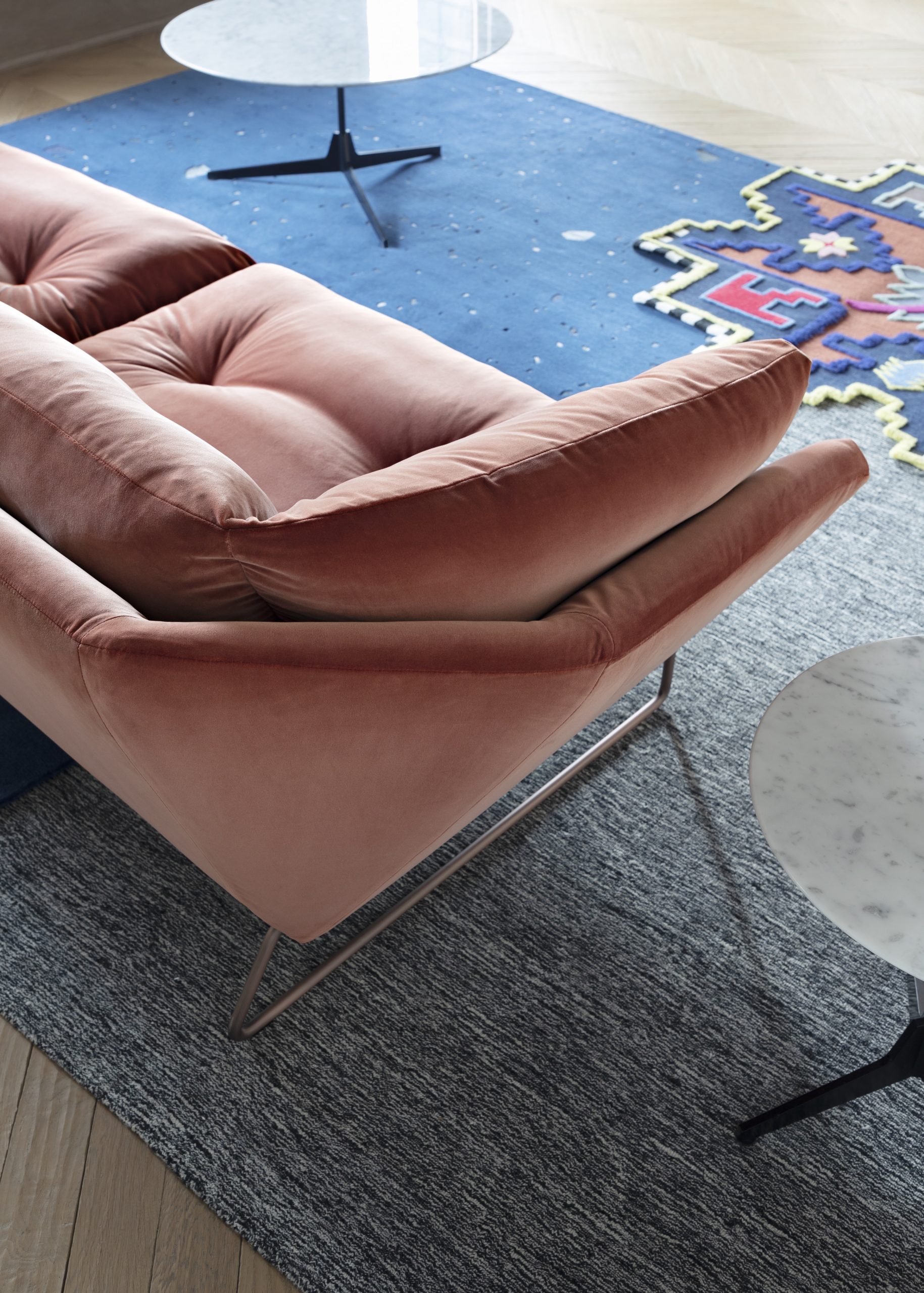 The new New York collection designs by Sergio Bicego still retain a contemporary soul and timeless spirit. The quilted cushions hint at a retro elegance and a nostalgic atmosphere yet the whole design is futuristic. At the same time the metropolitan allure is heightened by the hexagonal shape of the frame resting on slim steel rod feet. New York suite is soft and welcoming also in the smaller versions such as the maxi lounge chair and the 155 cm sofa which seats two people comfortably and is particularly interesting for contract projects.